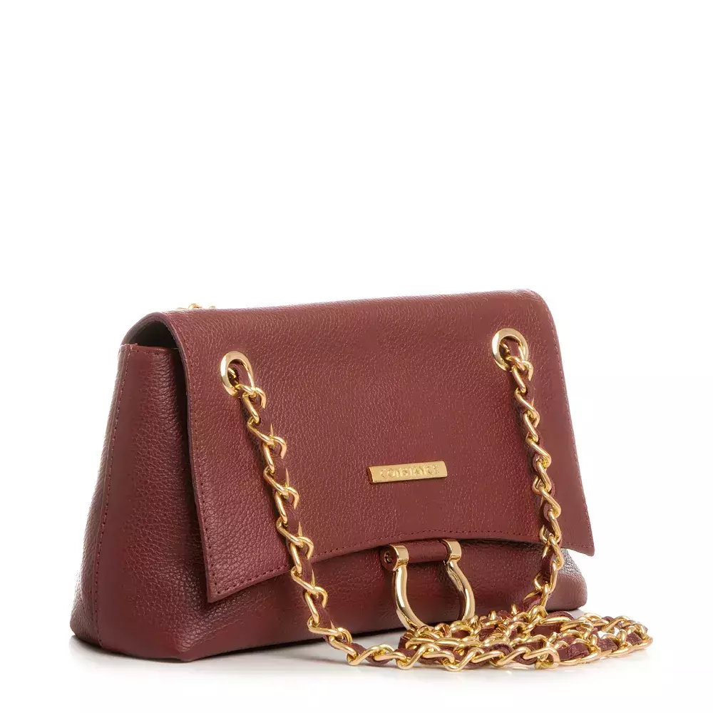 Seja para um compromisso rápido ou um passeio, a Bolsa de Couro Pequena Burgundy com sua aparência moderna e elegante, é a escolha ideal para renovar o seu visual para as próximas temporadas. O design sofisticado desta bolsa incorpora a funcionalidade sem sacrificar o estilo. O couro de primeira linha traz durabilidade e requinte, enquanto sua alça de corrente permite versatilidade no uso, seja como bolsa de ombro ou transversal. Apesar de pequena, essa bolsa oferece espaço interno inteligente que facilita na organização de itens essenciais e os mantém seguros. Seja durante o dia, quando você precisa de praticidade, ou à noite, quando deseja dar um up no look, essa bolsa é sua aliada confiável em todas as situações.