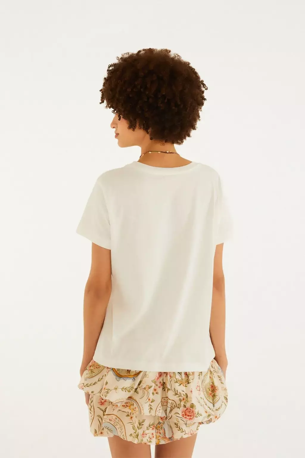 T-Shirt Fit Portal Tropical R$ 198 ou 2x de R$ 99,00 t-shirt fit portal tropical. traz uma modelagem confortável e um corte clássico, com decote redondo e mangas curtas. seu design autêntico se destaca pelas cores vibrantes que elevam qualquer look. ideal para ocasiões casuais ou para dar um toque de originalidade a produções básicas. FARM RIO original - alto verão 26.