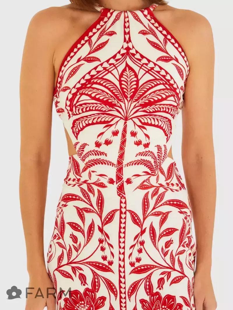 O modelo possui decote reto alto que acompanha corda como alça, ela segue até as costas e finaliza em amarração. A cintura apresenta aberturas laterais que seguem até as costas, que contam com abertura longa. Possui elástico na cintura. Acompanha forro no busto. Peça confeccionada em tecido leve com elasticidade.